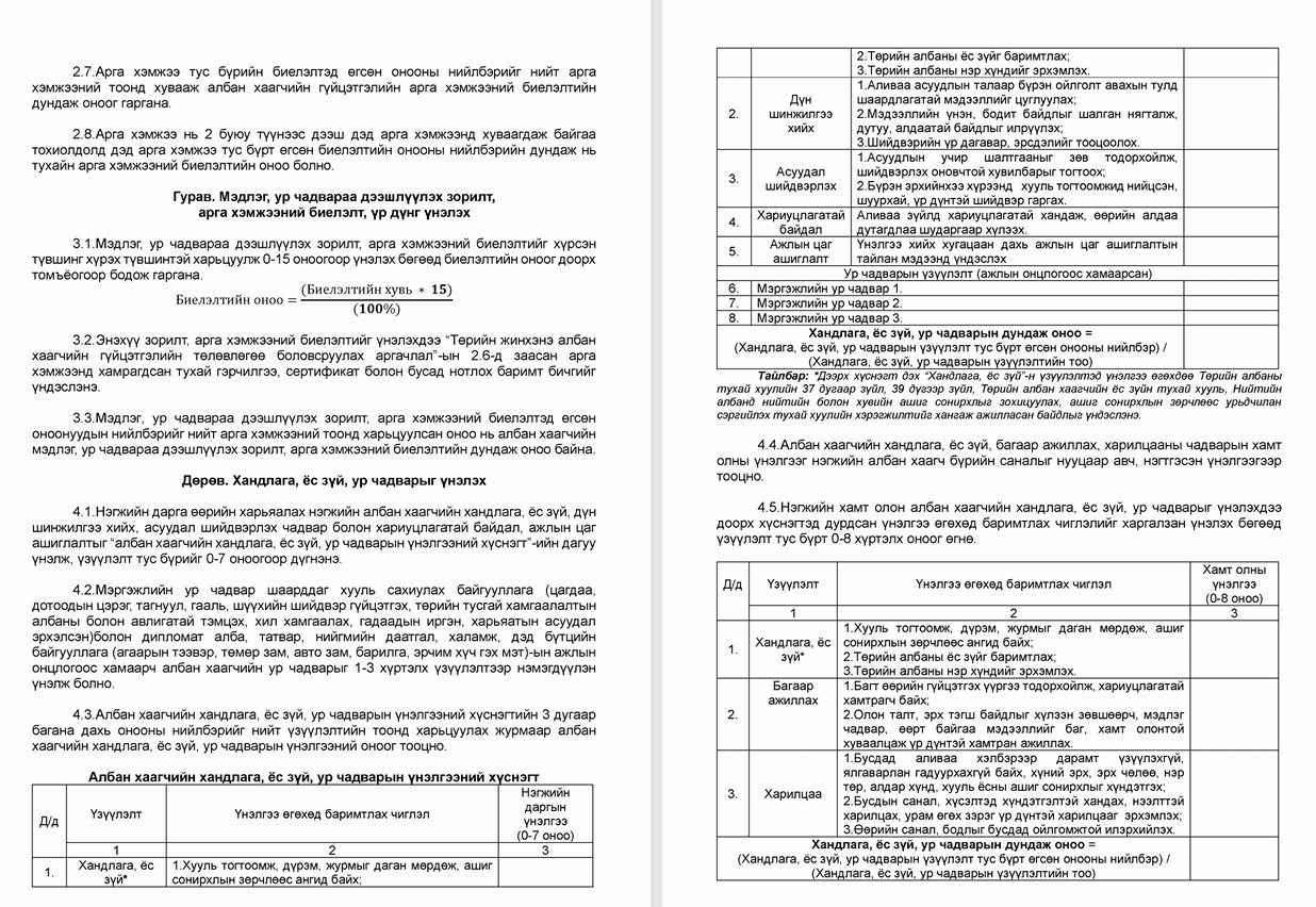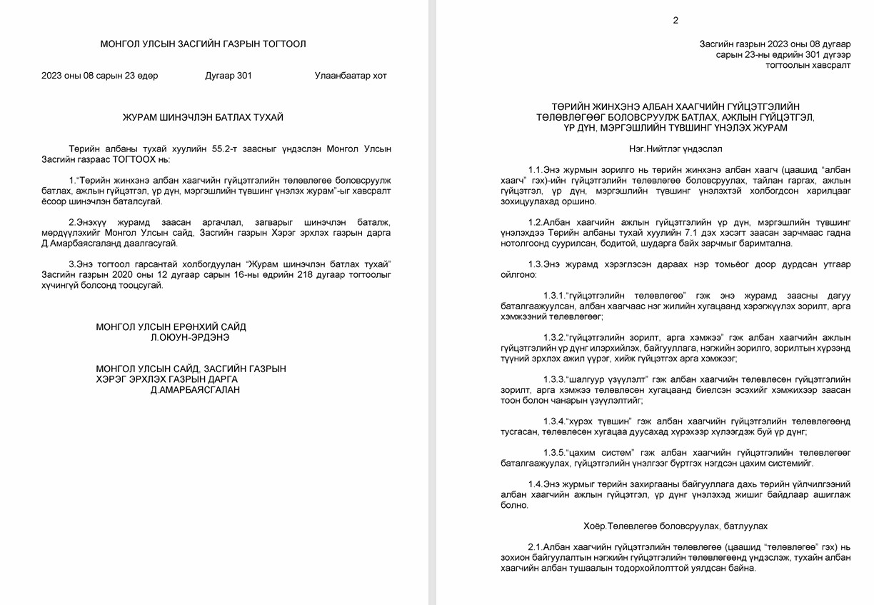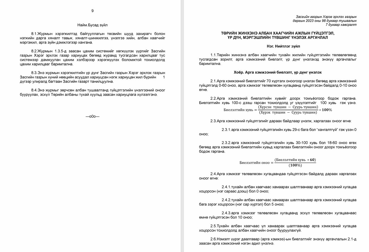 Албан хаагчийн ажлын гүйцэтгэлийг үнэлэх журам / ЗГ 2023 оны 301 тогтоол /