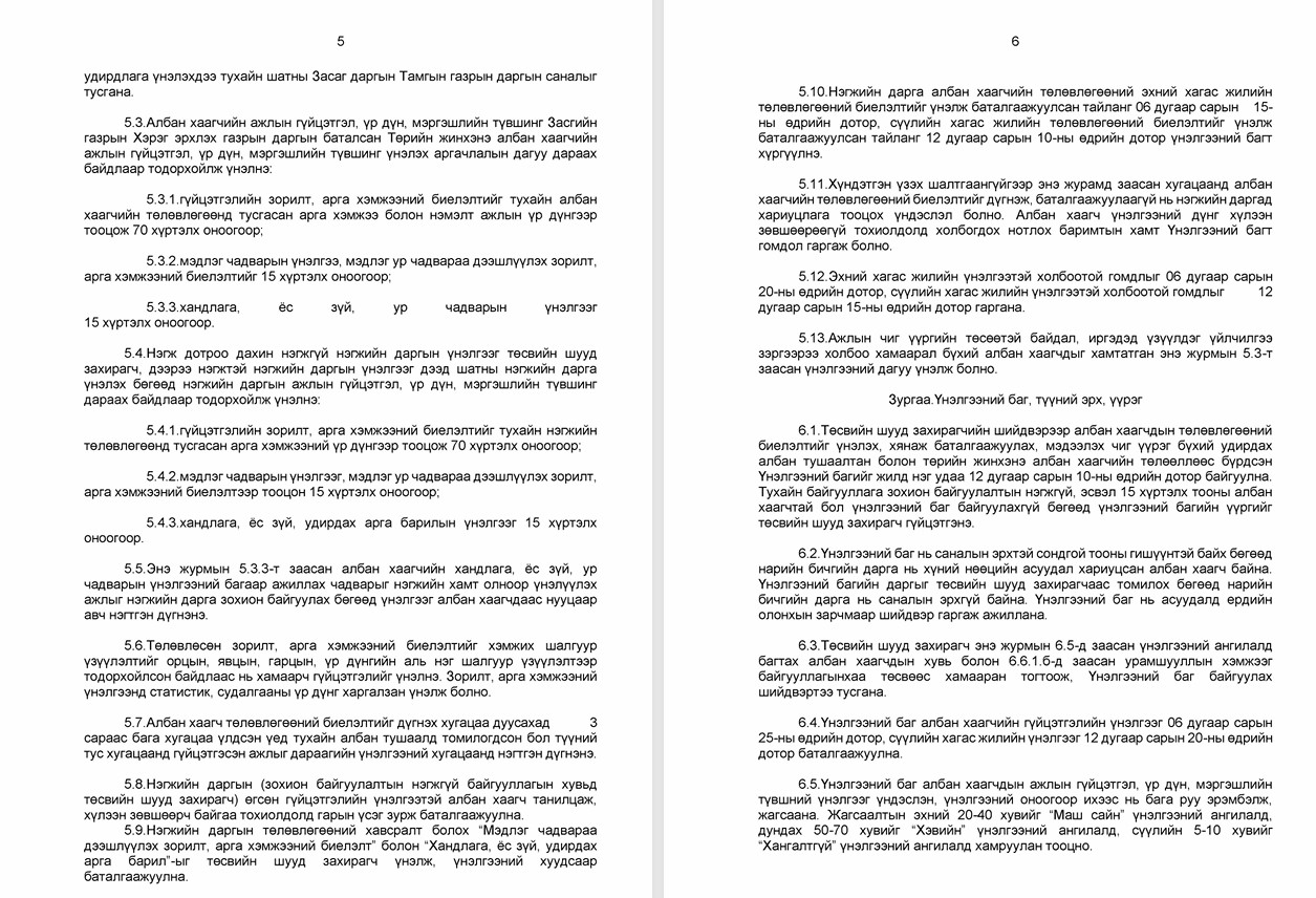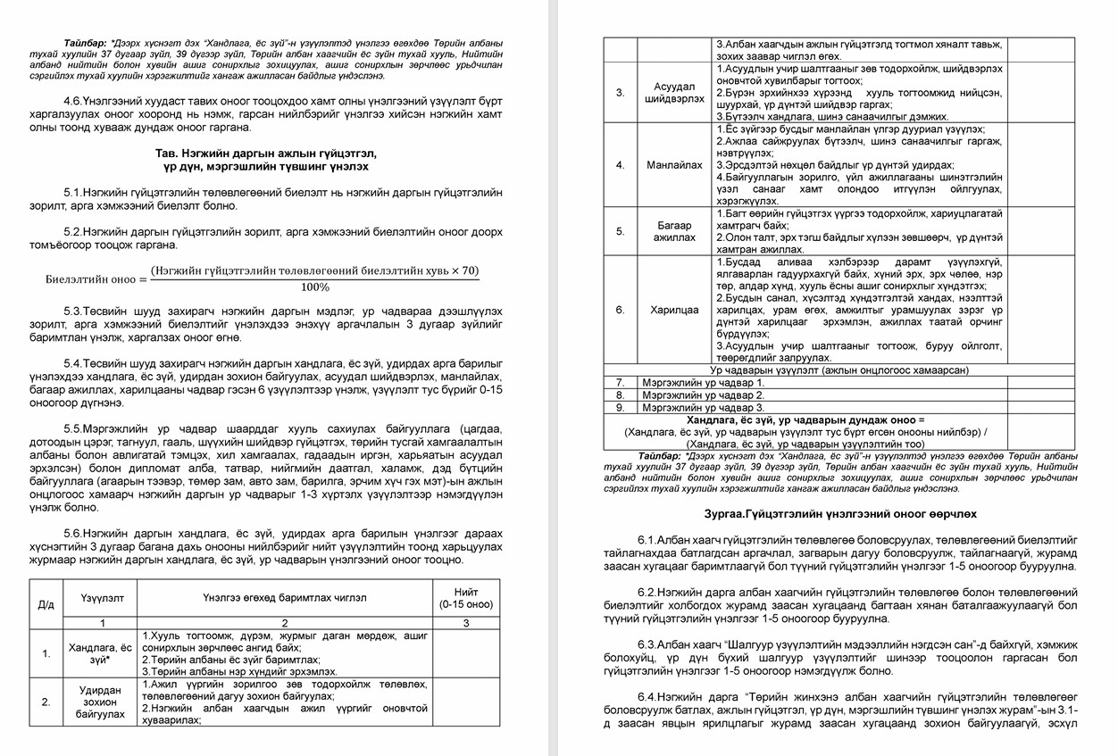 Албан хаагчийн ажлын гүйцэтгэлийг үнэлэх журам