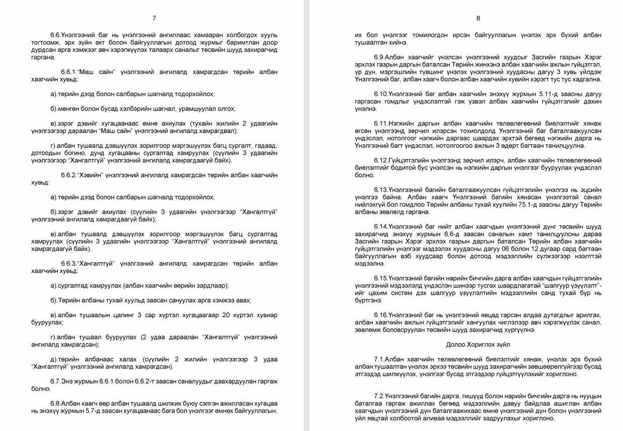 УС, ЦАГ УУР, ОРЧНЫ ХЯНАЛТ ШИНЖИЛГЭЭНИЙ УЛСЫН ХЯНАЛТЫН ДҮРЭМ